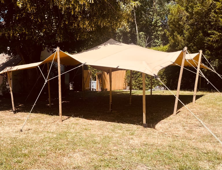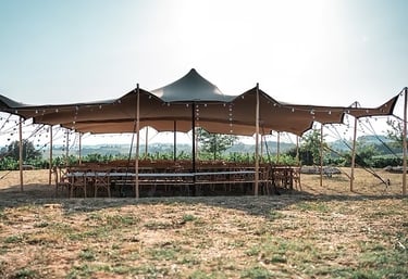Ni chapiteau ni salle figée. Des tentes stretch libres, élégantes et nomades pour célébrer sous un ciel ouvert.