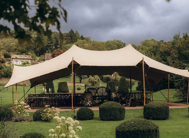 Ni chapiteau ni salle figée. Des tentes stretch libres, élégantes et nomadesi pour célébrer sous un ciel ouvert.